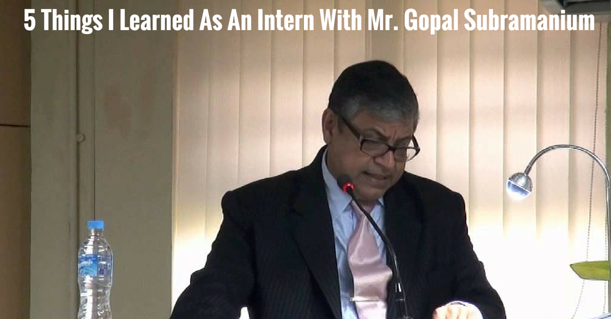 My journey to law school began in July 2012 when I joined HNLU Raipur. With time I realized that it is not only the theoretical knowledge which makes us a successful lawyer but the practical aspects of it which carves out the true quality of a lawyer in us. An internship with Mr. Gopal Subramanium exposed me to a man who represents a good balance of the different aspects of legal practice.Here is a brief summary of what unfolded during my time at this office.