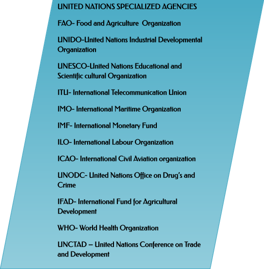 1. India has actively cooperative with various principal organs and specialized agencies of the United Nations. India has served a number of two year terms as a agencies of the United Nations.