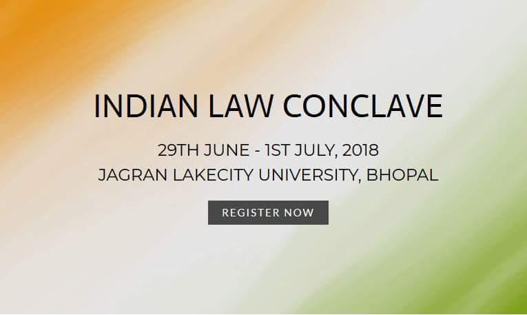 Indian Law Conclave is a three-day National Conference organized by Adhrit Foundation, INY Foundation, and Model Governance Foundation at Jagran Lakecity University, Bhopal from 29th June – 1st July, 2018. Focus areas of the Conclave would be Alternative Dispute Resolution Mechanism, Constitutional Law, Corporate Law, Cyber Law, Intellectual Property Law, International Law, and Maritime Law.