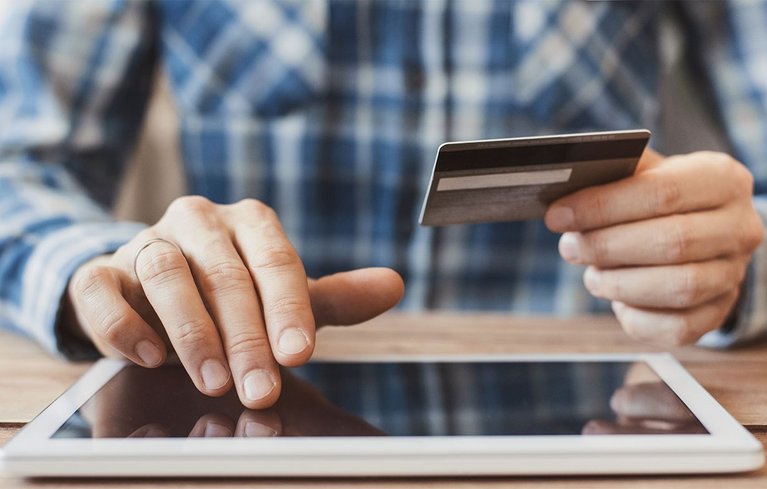 - He uses a credit/debit card at a PoS machine or an e-commerce market platform.