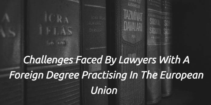 In this blog post, Jojongandha Ray, a student at Amity Law School, Gurgaon and pursuing a Diploma in Entrepreneurship Administration and Business Laws from NUJS, Kolkata, describes the challenges a lawyer with a foreign degree faces while practicing in the EU.