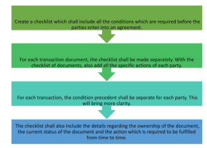 A checklist of condition precedent conditions is always beneficial. A foresight regarding the requirement of a particular transaction will help to reduce the time wasted otherwise to collect all documents. The CP checklist is also important so that the parties before entering into a contract can verify the documents peacefully. This condition precedent can also reduce the dispute which might have arisen. So before entering into a contract, have conditions precedent set which will essentially set the transaction goes on at ease.