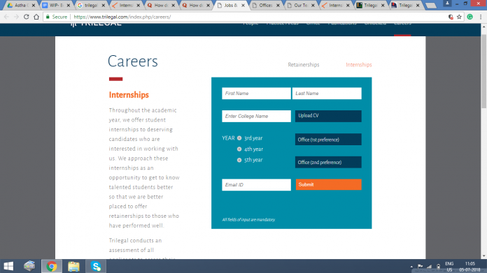 Internships are imperative for any law student to understand the pragmatic and experiential aspects of the theoretical knowledge provided for in the textbook learning of law schools. Internships act as a facilitator to clueless law students in deciding their career path. It helps them understand which field of law fascinates them the most and at the very same time, helps them discern the type of work they are good at.