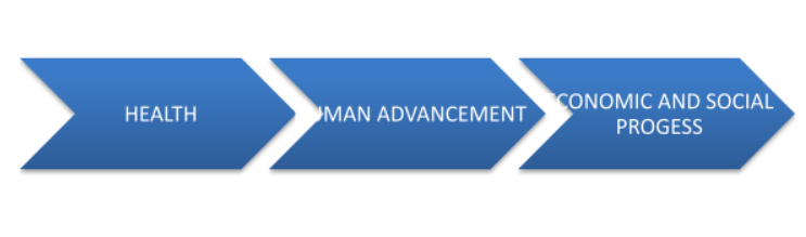 The concepts of health, advancement and progress fit in an equation where one thing leads to another hence, creating a domino effect. If the populace of a country is healthy then it would ensure the advancement of the citizens and if the same is ensured then this would surely pave way for the economic and social progress in a country. To simplify the same herein lies a pictorial representation that settle things more vividly: