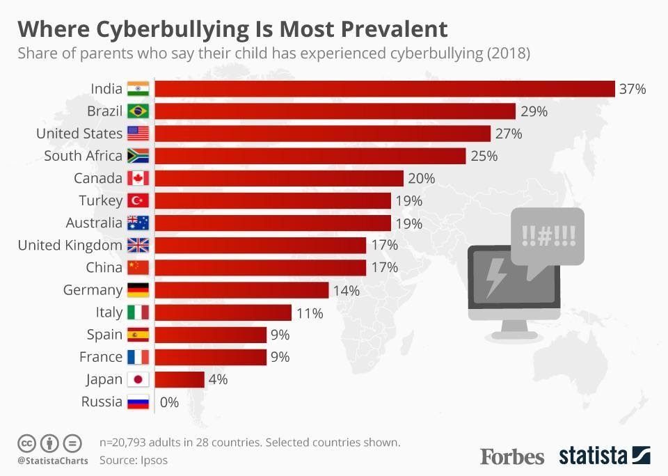 If we look from the parent’s perspective, the Indian parents were confident that their child has experienced cyberbullying once in life, whereas parents in Japan and Russia said that there has been no case of cyberbullying with their child. Similar to India was the response of Americans and across Europe.