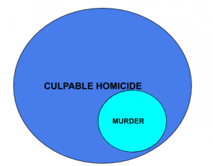 • Culpable homicide not amounting to murder: There is knowledge or criminal intention in both cases. The only difference which amounts to causing the culpable homicide amounting to murder is the degree of the criminality of the act. In IPC it has been termed as culpable homicide.