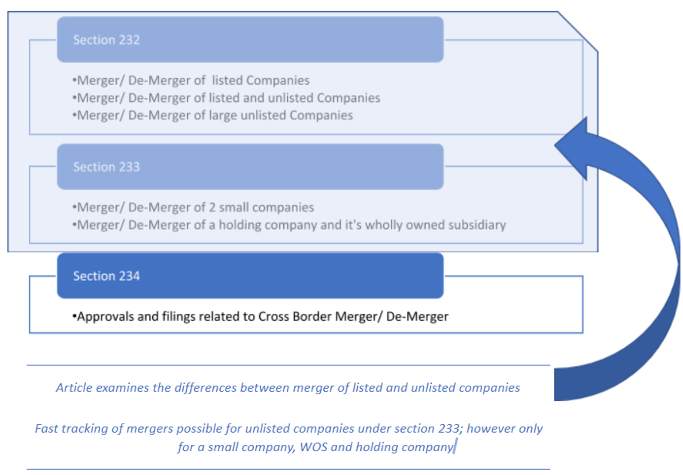 Section 232 applies to all companies listed or non listed not qualifying under section 233. Section 232 is aimed at protecting minority interest and ensuring adequate regulatory oversight. There are 4 key differences from section 233 that are enumerated as under: