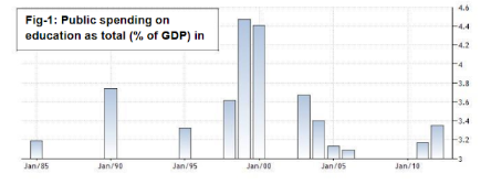 A slight observation of this graph shows that the State has reluctantly reduced a considerable amount spent on the education sector. This is a worrisome problem as because of this, the quality of education will decline, and there will be problems in the coming future.