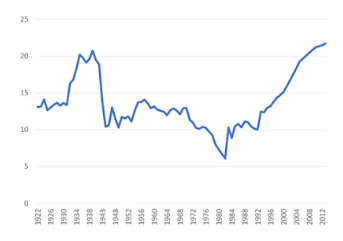 A careful observation of the graph will show us that there was a sharp decline in income inequality in the 1950s and 1980s but after this duration, the income inequality is on a steady rise, the income share of the top 1% is increasing. Therefore, government intervention is necessary to reduce this inequality.