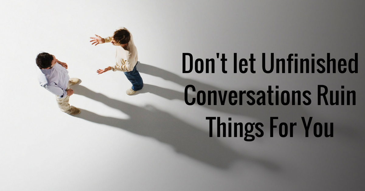 Do you have unfinished conversations in your life, at your workplace? Within your team? Make a list of unfinished conversations that you need to seek out and re-initiate. Take initiative and complete them today. You finish the conversations from your side. Hear out others too. If they don’t want to speak up, tell them about the perils of unfinished conversations. If they care, they will reach out and complete the unfinished conversations.