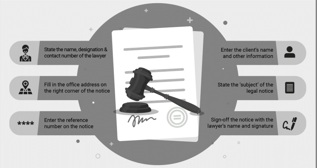 The letterhead of the advocate/party should be with address, phone no. as well as the e-mail id. so that the opposite party can communicate back. It is not mandatory but it is better to have a reference number for the legal notice to keep a track of the notice issued. This legal notice is sent through Registered A.D. or through courier so that it could be tracked and one can know once the defaulting party receives it. The legal notice should have a proper date so that the time to respond to the legal notice can be calculated.