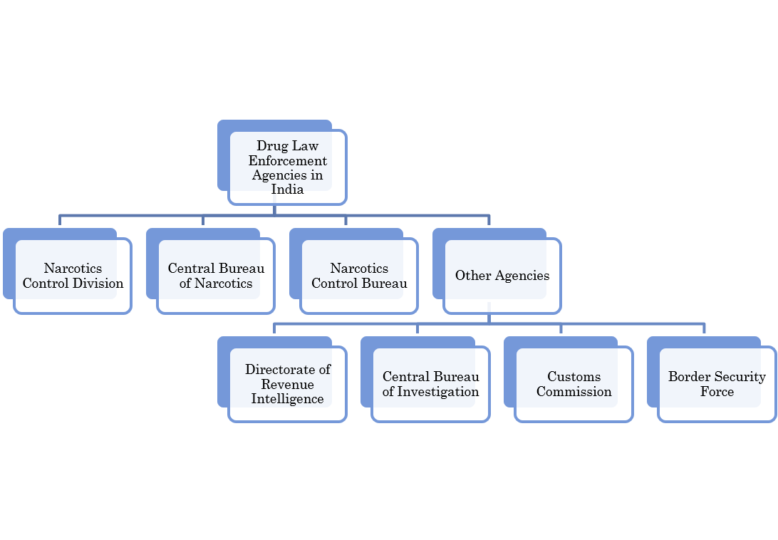 India’s policy towards drug control is enshrined in the Directive Principles of State Policy through Article 47 of the Constitution of India, which states that it is the duty of the state to raise the level of nutrition, the standard of living and to improve public health, moreover the prohibition of the consumption of drugs which are injurious to health, except for medicinal purposes. It is among the primary duties of the state. The drug control strategy in India is a multi-agency function.