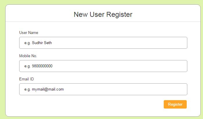 - When you click on ‘new user’, a new page will open in which you will have to enter your user name, mobile number and email to get yourself registered. The page would be like this: