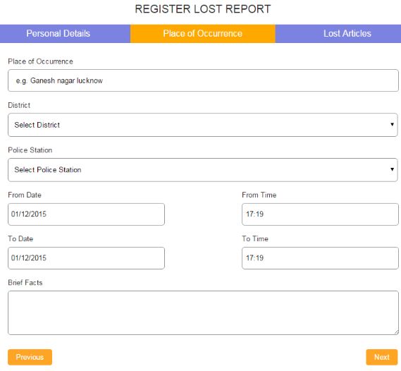 - Lastly, you need to enter the complete details of the incident in the ‘brief facts’ section. You should enter information like when and how the event happened and all the relevant information that you remember.