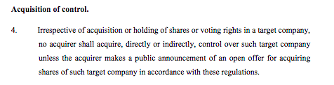 - Mandatory open offer because of the Takeover Code regulations to acquire 31% of Mindtree Ltd at Rs. 980 per share in cash.