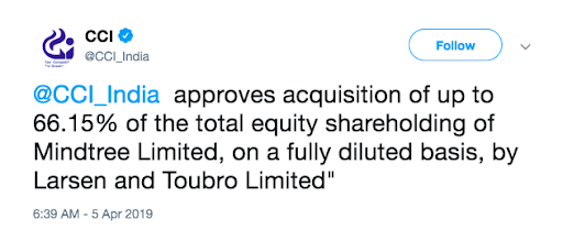 There were concerns regarding the antitrust aspect of the said takeover. However, the CCI has approved the said merger in record time. CCI typically takes more than 21 days. The merger now awaits approval from the United States and German antitrust regulators as Mindtree has clients over there.