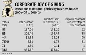 Corporate Funding corresponds to the funding of the political parties by Corporate bodies in India. It has been observed that most of the donations to political parties are made by companies. In the year 2013-2014, 90% of the funds of political parties came from big corporates in the countries.