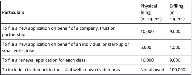Rule(s) 10 and 11 of the Trademark Rule govern the fees and forms for trademark application, registration and prosecution in India.