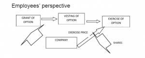 - The employees do not enjoy the rights of dividend or voting on the grant of option till such shares are issued by the company in the exercise of the option by the employee.