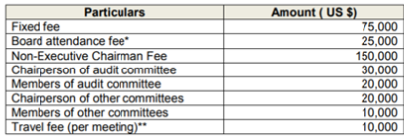 Apart from this remuneration, they are also entitled to other benefits like D&O insurance amounting to US $200 million with an excess insurance of US$100 million to pay for the personal liability of the directors and officers and for any claims made against them while serving on the board as an officer of the company