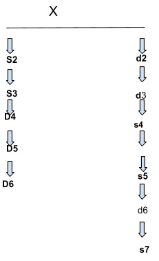 X is the common ancestor and is to be taken as first generation. The right side represents father lineage and left side mothers. S2 and d2 cannot marry each other as they are in the prohibited degree of sapindas. D6 and s7 can marry as they are not within the prohibited degree of sapindas but once they marry the lineage of sapinda again will start from them and continue further in the same manner. Sapinda relationship computes upwards either through the mother or the father or both and the person concerned is always counted as one degree. The provision of Sapinda relationship has a scientific basis too. It is biologically proven that, relationship between sapinda might result in offspring being born as deaf and dumb or physically handicapped.
