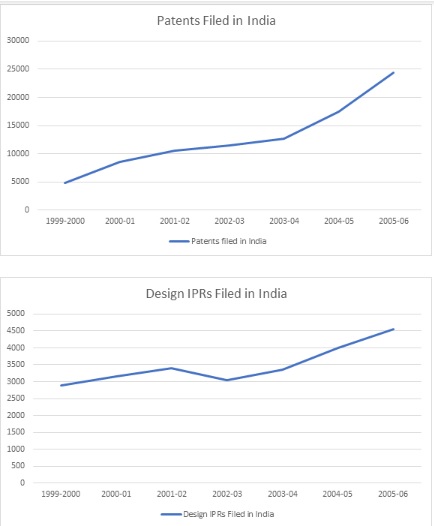 A survey on the trend of patents applications and design applications filed in India over last 15 years clearly shows a rising trend after the year 2002-03.