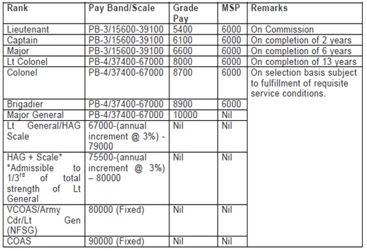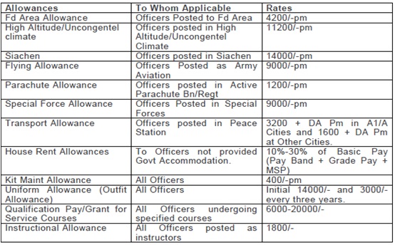 Army provides free Medical facilities for self & dependents, Canteen facilities, Entitled Ration, Mess/ Club/Sports facilities, Furnished Govt Accommodation, Car/Housing Loan at a subsidized rate.