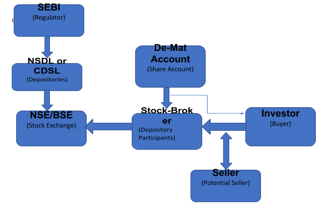 • In India, a retail investor cannot directly buy or sell shares on the Stock Exchange, they need an intermediary known as Depository participants/Stockbroker who assists to execute the transactions and have them electronically accounted for.