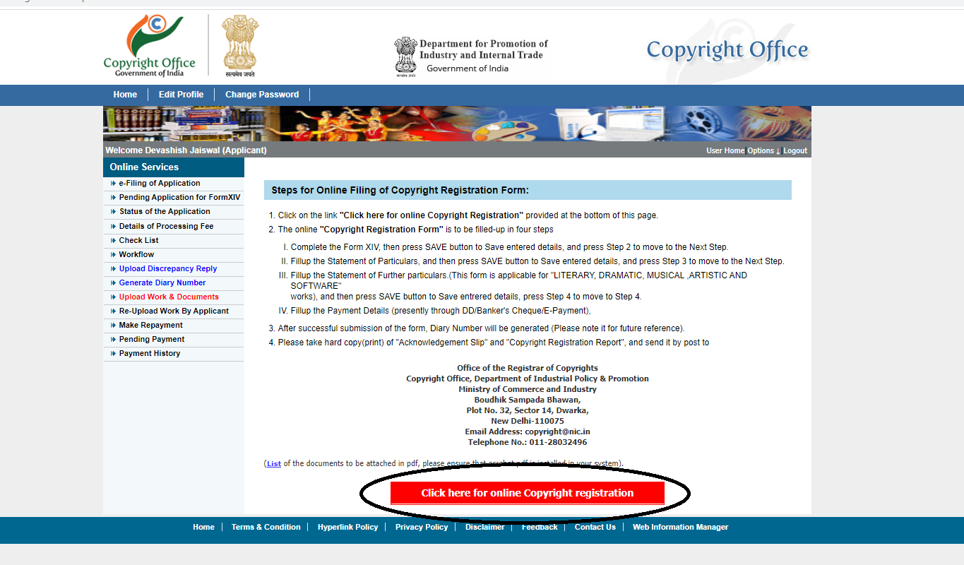 - After completing the e-filing application for the respective copyright, make payment and wait for the status.