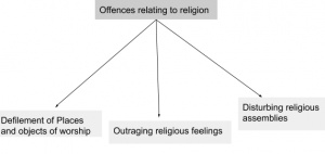Chapter XV (Of Offences Relating To Religion) of the Indian Penal Code contains five Sections- Section 295, Section 295A, Section 296, Section 297 and Section 298. The offences relating to religion can be broadly classified into three categories: