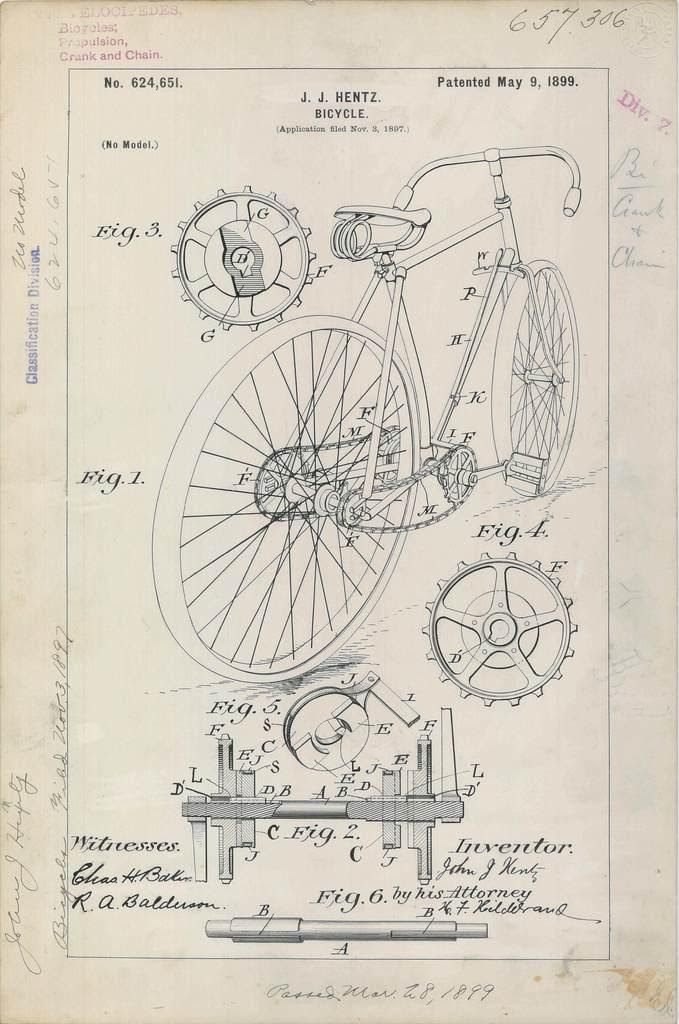 The above picture is a drawing for J.J. Hentz’ Bicycle