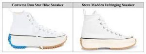 Converse had taken precautions to safeguard its Run Star Hike design, including formally and legally seeking and receiving design patents from the U.S. Patent Office. Converse says that little over a year after launching its patent-protected Run Star Hike, Steve Madden began selling an infringing shoe called the Madden Girl Winnona Flatform High-Top sneaker. Converse’s repeated requests to stop infringing immediately were greeted with silence. When Madden did reply, they refused to cease selling their infringing footwear.