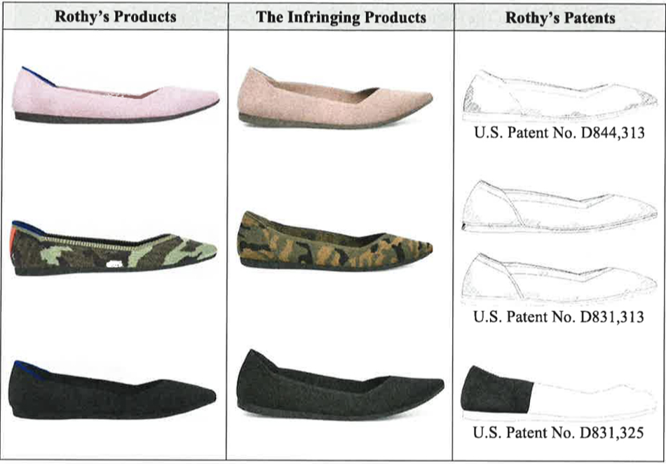 According to Rothy’s, “in an effort to unlawfully leverage the valuable goodwill Rothy’s has developed through its innovation and significant investment, Madden blatantly copied the distinct, and protected style and appearance” of its popular The Point flats through the Steve Madden-branded Rosy Flats.