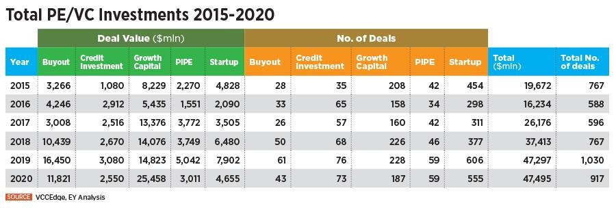 Private equity (PE) investment in India hit a new record high of $38 billion in 2020 that is much higher than the $16.27 billion recorded in the entire 2019 and it was only $10 billion in the year 2018. India, despite the pandemic and capital inadequacy, set a new benchmark with a record $80 billion of M&A and Private equity in 2020. The highest PE investment was driven by flows into the Jio platforms at $15.34 billion followed by tower infrastructure at $ 3.4 Billion and Flipkart at $ 1.2 Billion.