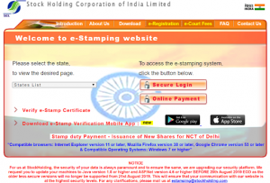 1. Google the words e-stamp, and then click on www.shcilestamp.com. The following page shall appear.