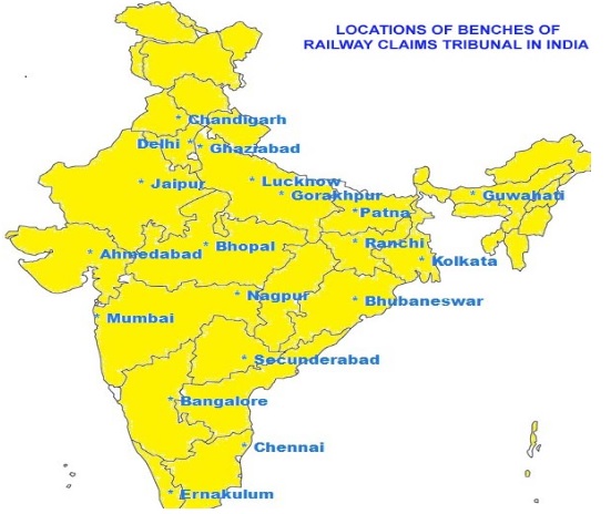 The RCT (Railway Claims Tribunal) to provide better access to justice for the people has its benches throughout the nation. There are basically 21 benches of the RCT (including the principal bench at Delhi) at 18 major cities. The map provided will give you a clear idea of where the various branches are located.