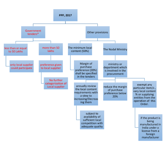To encourage ‘Make in India’ and promote indigenous manufacturing and production of goods and services through partnerships, cooperation with local companies, establishing production units in India or Joint Ventures (JV) with Indian suppliers, Government of India promulgated Public Procurement (Preference to Make in India), Order 2017 on 15 June 2017 (PPP).