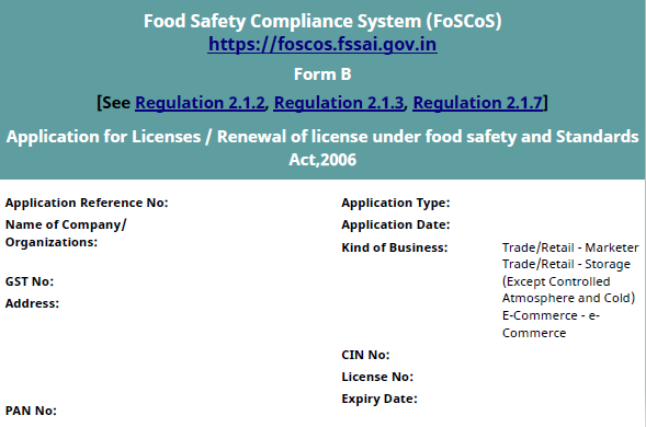 - All licenses and registrations are obtained/modified/renewed and or transferred by a food business through the Food Safety Compliance System (“FoSCoS”) which is a cloud based online regulatory platform developed and operated by the FSSAI.