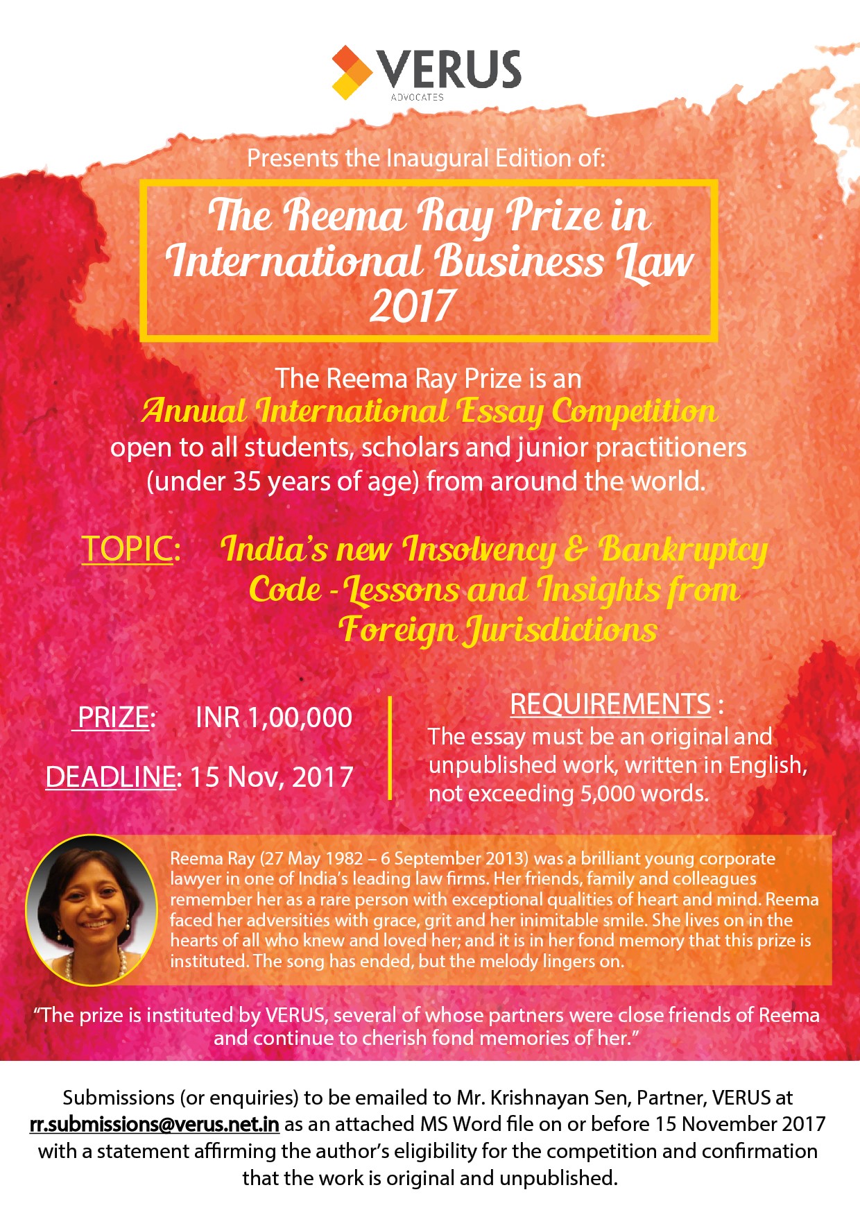 VERUS, India, presents the Inaugural Edition of the REEMA RAY PRIZE IN INTERNATIONAL BUSINESS LAW 2017.
