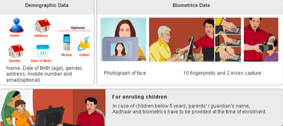 Aadhar card is an identification card which consists of a 12-digit unique identification number generated and issued by UIDAI after undergoing due authentication process which deals with the looking of demographic information including name, address, place of birth, date of birth, etc, and Biometric information which involves digital fingerprints, two iris scan and a facial photograph. Mainly fingerprint and iris data are taken for authentication. Aadhar card is issued only to an India citizen, who is a resident of India so that the system can: