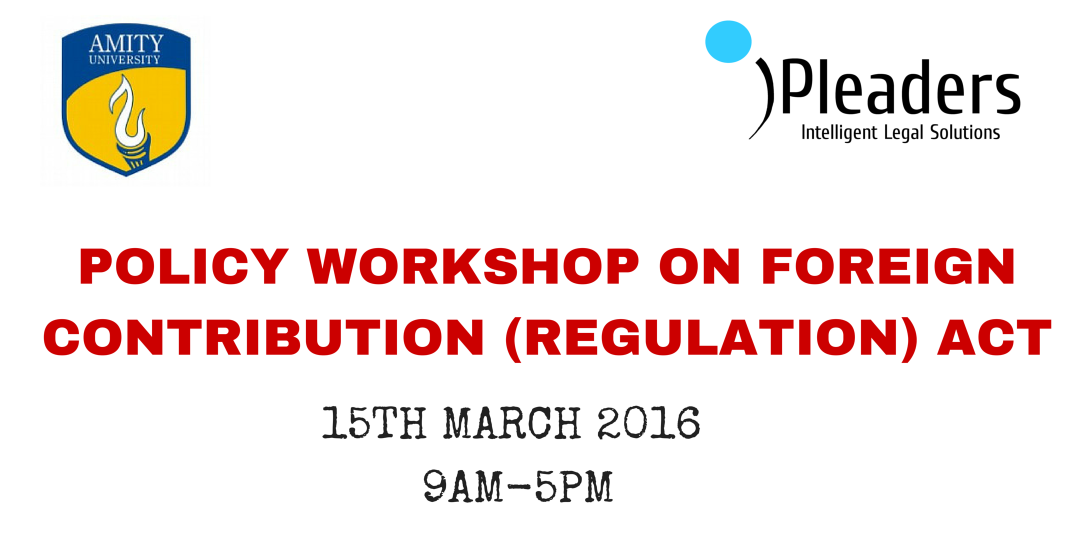 A Policy Workshop on Foreign Contribution (Regulation) Act, was organised jointly by Amity Institute of Public Policy and Amity Law School, Noida, in partnership with iPLeaders Delhi, on 15th  of March, 2016 at Amity University Campus Noida.