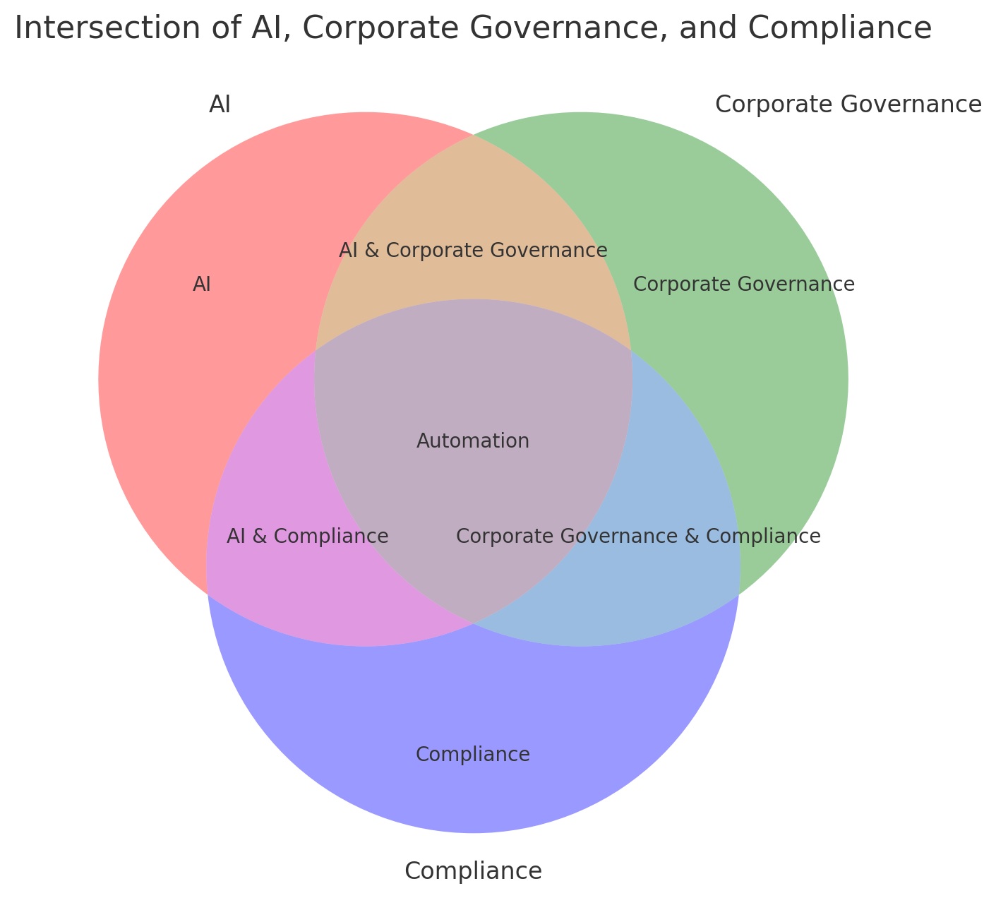 AI technologies like machine learning, natural language processing, and robotic process automation can recognise patterns and trends, help in making decisions, and can even learn from experience enabling machines, systems, and applications to perform tasks that would normally need human intelligence and logical reasoning. Thus, “automation” of those tasks would be the intersection point for corporate governance, compliance, and AI.