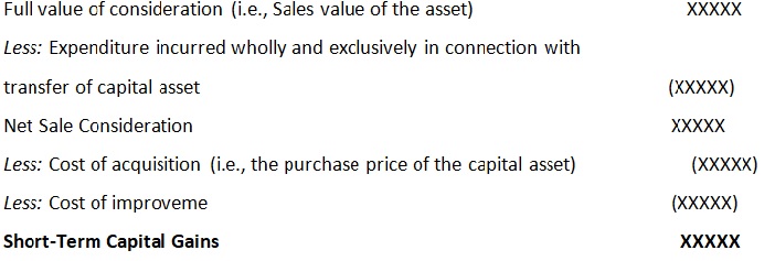 Short-term capital gain arising on account of transfer of short-term capital asset is computed as follows :