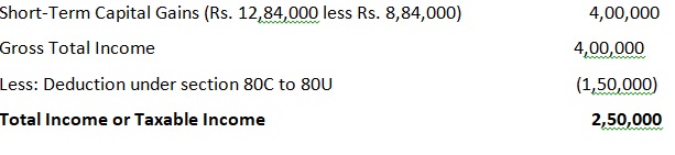 Deduction under section 80C to 80U can be claimed on short-term capital gains other than STCG covered under Section 111A. In this case, the gain is on sale of land and, hence, is not covered under section 111A. Hence, Mr. X can claim deduction under Section 80C of Rs. 1,50,000 from STCG of Rs. 4,00,000. The taxable income of Mr. X will be computed as follows :
