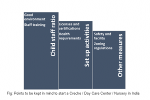 - Zoning regulations – Before starting the crèche, you should check whether the place where you are planning to open the crèche is permitted as per municipality or town planning rules. A certification from the proper authority is a must.