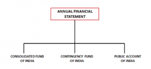 The Annual Financial Statement consists of three parts i.e Consolidated fund of India, Public Account of India and Contingency Fund of India.