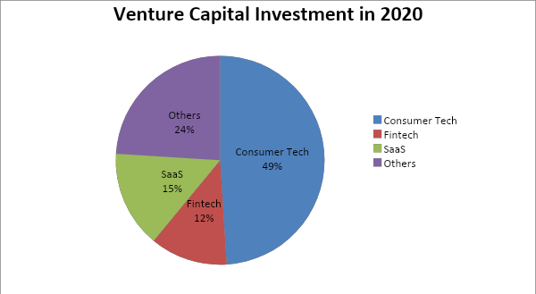 As per the report, Consumer tech, SaaS, and fintech were the top three sectors that accounted for nearly 75% of the VC investments by value in 2020. In 2020 investment of $10 billion was made by venture capital and private equity, out of which $7.6 billion was directed towards these three sectors.