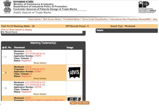 The above picture shows the result of a company names Levis under class 25. Levis Strauss & Co. is the owner of the clothing and do own this mark internationally. You can select the option of show details which would display information about the company like date of expiry, registered or not, etc. However, if the result shows no matches, then there is no registered company in that name. It is very important to know the result before registering for the trademark. After the search is done, you are ready to register the mark. For registering the trademark follow the step below: