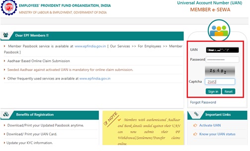 7. Put your UAN no., password, captcha and then click on the ‘sign in’ box.