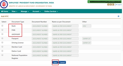 Fill up the red colour highlighted documents details, for the online withdrawal benefits and then click on the ‘save’ option.
